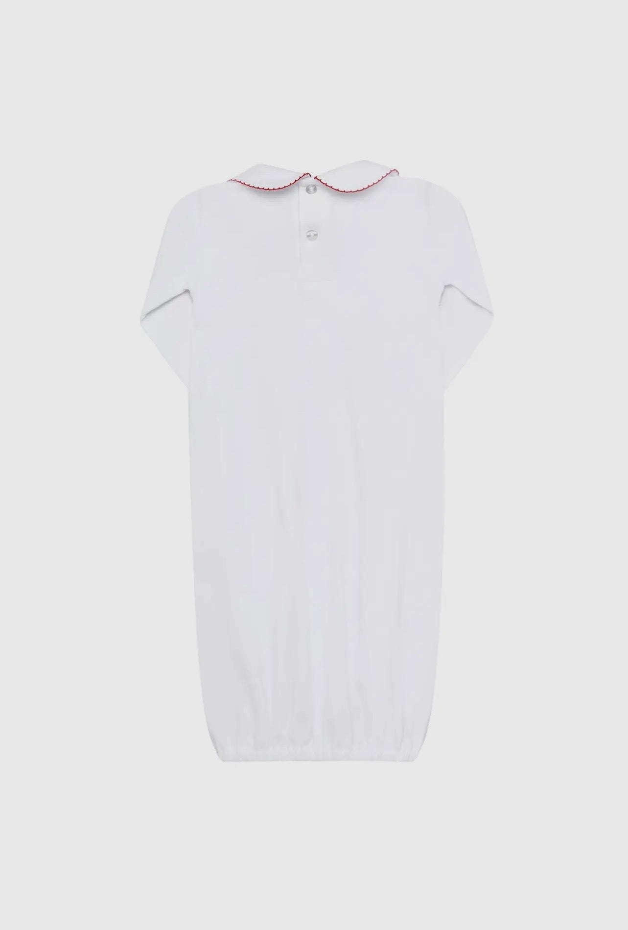 Make your holiday season merry and bright with our Christmas Smocked Gown. Handmade with 100% pima cotton, this gown features delicate smocking for a unique, cozy touch. Perfect for snuggling up by the fire or lounging with family (and cookies)!