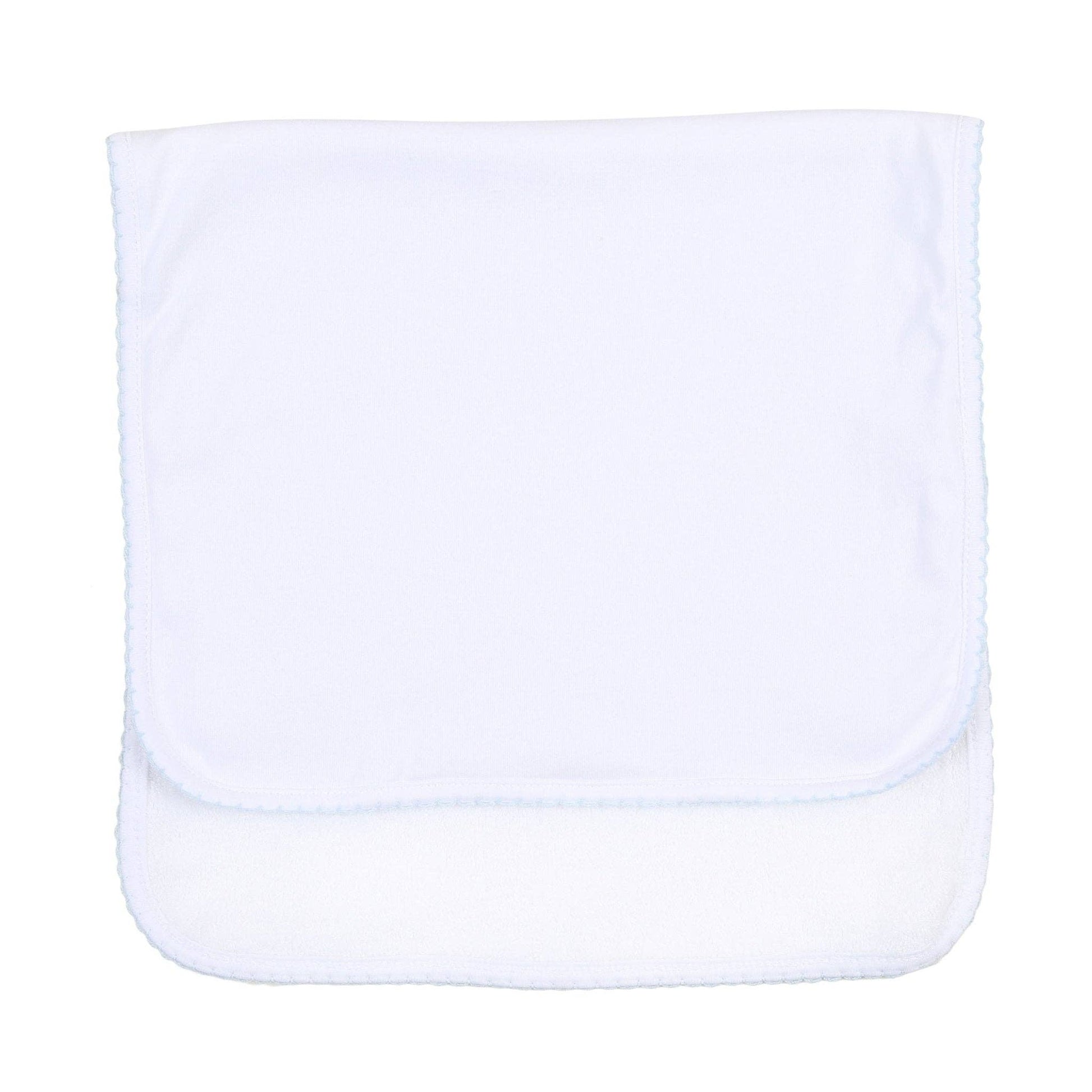 Sweetest comfort for little moments. Our Magnolia Baby Essentials Burp Cloth offers the gentle touch of pure pima cotton, perfect for after-feeding cuddles. The soft trim adds a classic Magnolia Baby charm. Absorbent, soft, and beautifully simple – an perfect blank for monogramming. * Coordinates with other items in the Solid Essentials Collection * Hand Embroidered * 100% Pima Cotton * Made in Peru * Machine Washable