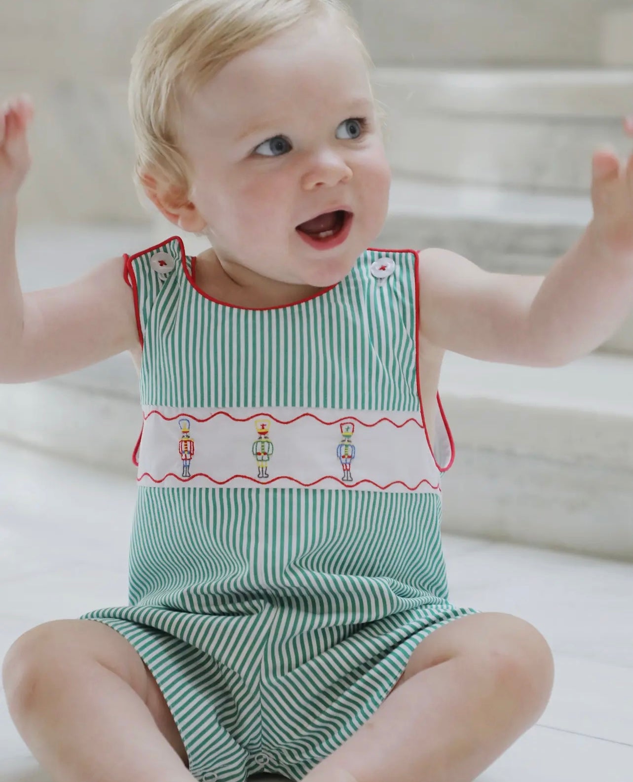 Dress your little one in the Jean Jon Jon - Christmas jumpsuit from The Yellow Lamb. Ideal for festive occasions, this piece captures our ethos of 'everyday heirloom.' It's designed for ease of care, perfect for busy parents who don't want to compromise on style. Childhood is fleeting, so let them wear great clothes while they can! With classic designs for the modern child, our jumpsuits are as practical as they are charming. Snap a picture, they grow up so fast!