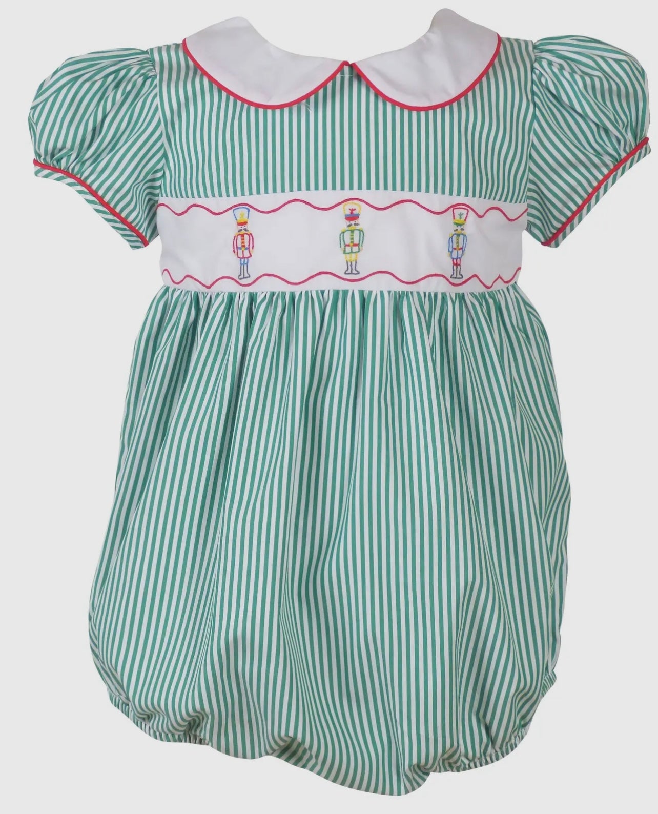 The Kelly Christmas Bubble bodysuit from The Yellow Lamb is an everyday heirloom. This piece blends classic design with modern style, perfect for any occasion from birthday parties to school events. Our easy-care fabric makes this bodysuit practical for busy parents, offering the very best in comfort and style for your child. Remember, childhood passes quickly, dress them while you can, and don't forget to snap a picture!