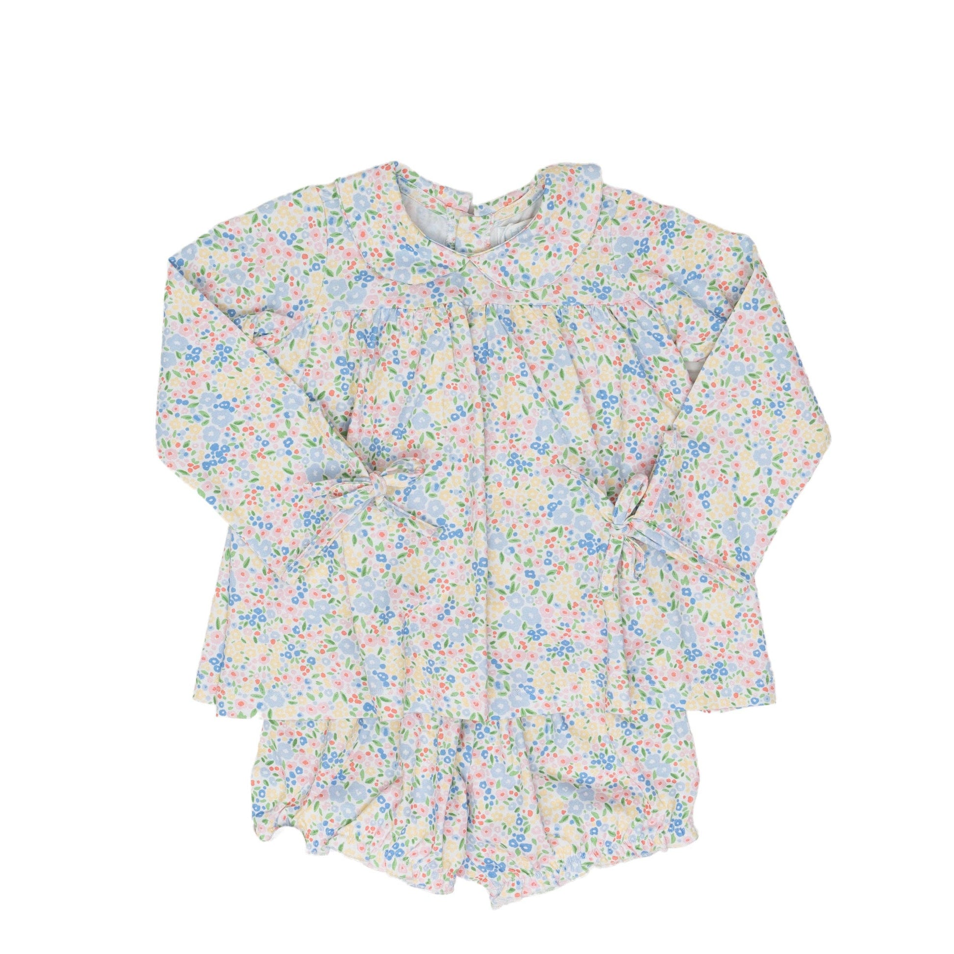 Get your little one ready for a day of play with our Mary Charlotte Floral Millefleur Bloomer Set. This girls set features a charming floral print and is accented with a playful pink collar piping. With long sleeves, this bloomer set will keep your child cozy and stylish all day long.